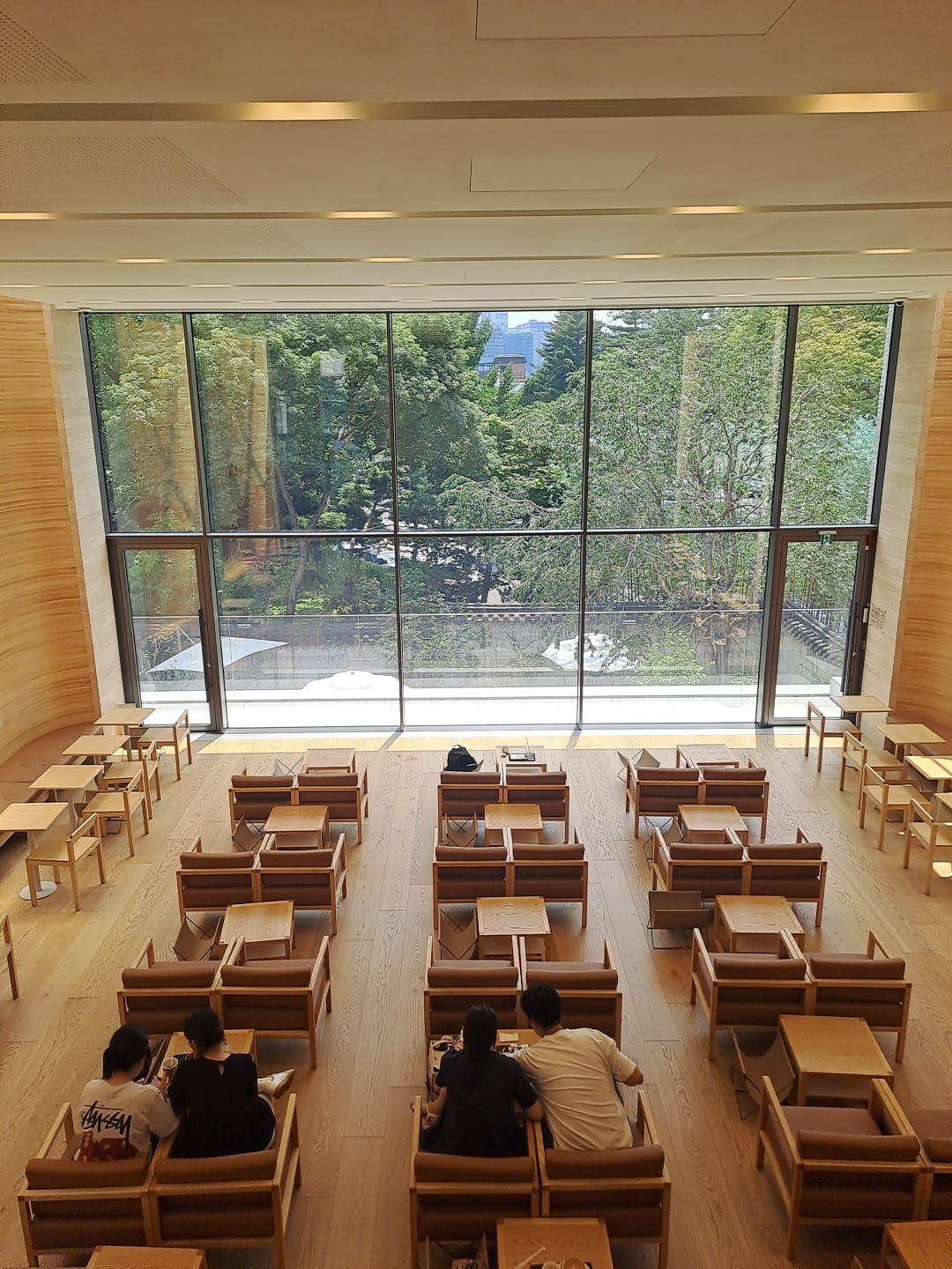 여기가 바로 모두들 인스타 카페 알고리즘에 낚여 한번쯤은 보셨을 법한 포스톤즈 삼청점의 대표 통창 뷰 공간인데요. 3층(?)에서 찍어 본 2층 메인 공간 풍경인데요. 저는 평일 점심시간에 방문해서 그런지 한산하고 자리도 좀 비어있죠? ㅎㅎ 주말 피크타임에는 아마 손님들로 정신 없이 만석일 듯한 인기 핫플입니다.